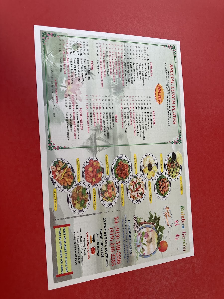 Rainbow Garden offers a menu rooted in approachable, classic Chinese dishes designed for everyday dining. The selection features comforting plates that are both familiar and satisfying, making it a reliable choice for lunch breaks, casual dinners, or convenient takeout meals.